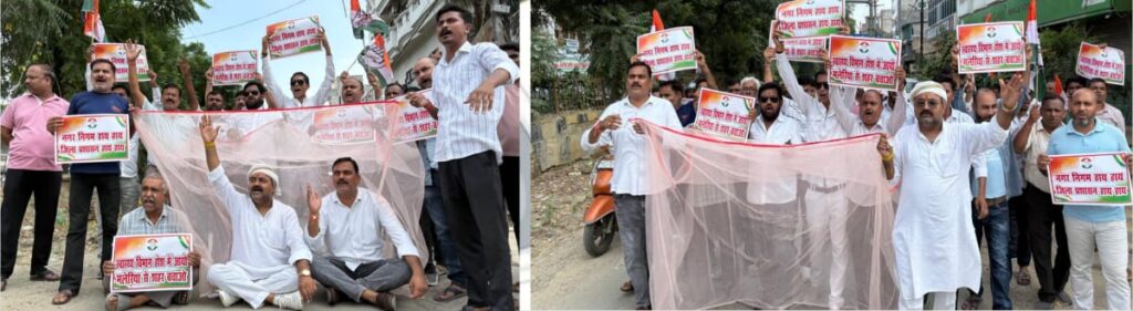 शहर में डेंगू-मलेरिया के खिलाफ, कांग्रेस का नगर निगम पर मच्छरदानी वार!